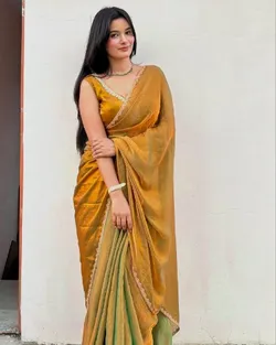 Yellow Soft Dola Premium Bandej Saree With Unstitched Blouse For Women
